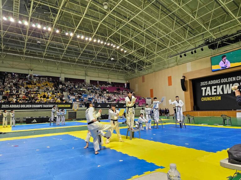 전국 73개 도장, 1,200여 명 참가 춘천 첫 개최로 지역경제 활성화 ‘톡톡’ 시범공연·사인회·체험행사로 관람객 호응… 지역경제 활력 기대 태권도를 향한 순수한 함성이 호반체육관을 가득 메웠다. 1일 열린 ‘2025 아디다스 골든챔스 태권도...