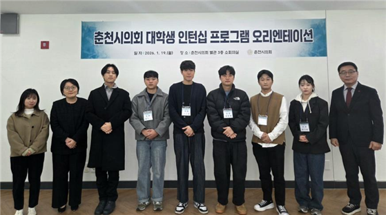 춘천시의회, 4주간 대학생 인턴십 프로그램 운영 강원대학교 정치외교학과 대학생 6명 참여 춘천시의회(의장 김진호)가 오늘부터 2.13.(금)까지 4주동안 대학생 인턴십 프로그램을 운영한다. 이번 인턴십은 강원대학교 정치외교학과에서 선발된 6명의 대학생이 참여해 조례분석과 주민조례청구 등...