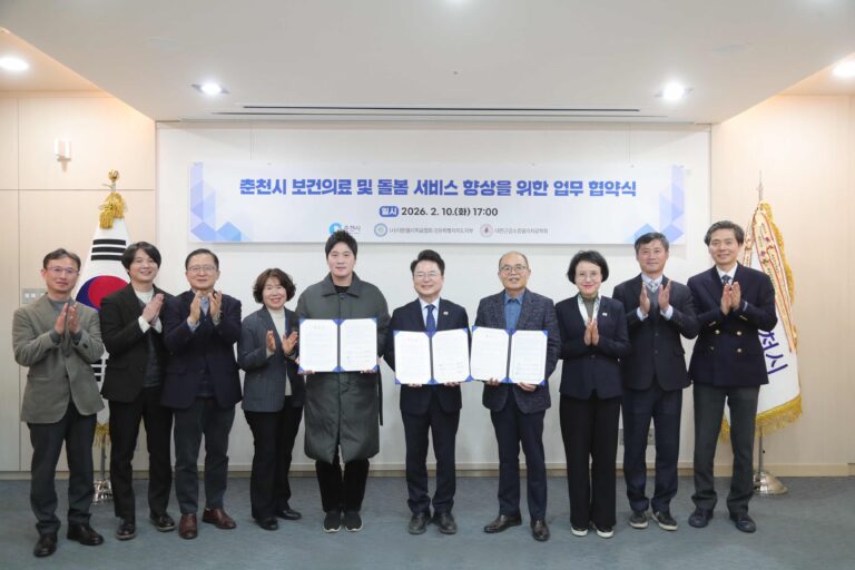 물리치료 전문기관과 노쇠예방 관리 협력 근감소증 예방 프로그램 표준화·전면 확대 춘천시(시장 육동한)가 고령사회 대응을 위해 노쇠예방 관리사업을 관계기관과 체계적으로 협력하기로 했다. 육동한 춘천시장은 지난 10일 시장 접견실에서 (사)대한물리치료사협회 강원특별자치도지부(지부회장 정래욱), 대한근감소증물리치료학회(회장...
