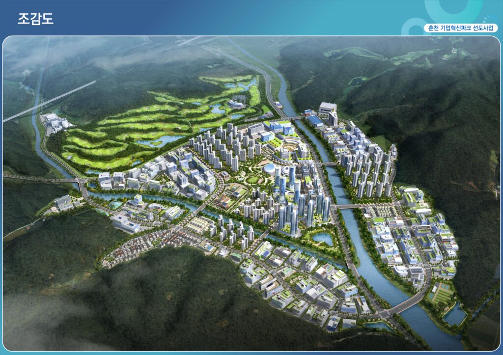 ‘춘천 기업혁신파크 조성사업’은 남산면 광판리 산 68번지 일원 363만㎡(약 110만 평) 부지에 총 1조1,031억 원이 투입되는 초대형 프로젝트다. 춘천시는 IT·AI·정밀의료 등 첨단산업을 집중 유치해 기존 바이오산업 성공모델을 더욱 확장하고, 주거·교육·의료·문화·업무 등 복합 기능을 갖춘 자족형 기업도시를 조성한다는 계획이다. 시는 “판교를 뛰어넘는 첨단산업 클러스터”를 목표로 내세우고 있다.